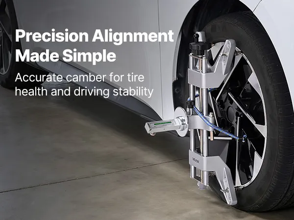 Il nostro calibro di campanatura può essere utilizzato da una sola persona per misurazioni rapide e precise. Non sono necessarie mani aggiuntive, rendendo l'allineamento delle ruote più facile, veloce e preciso che mai.