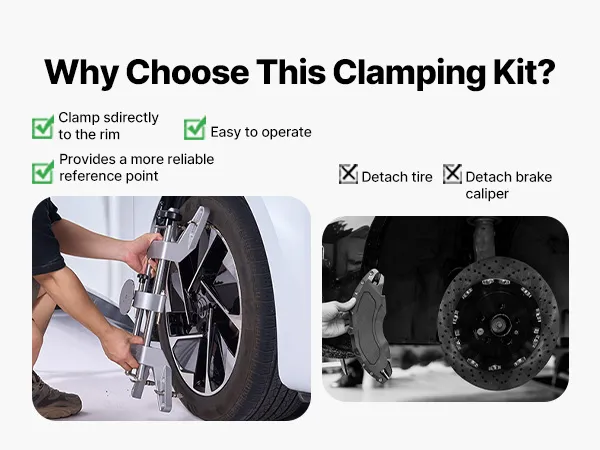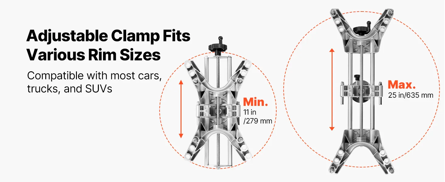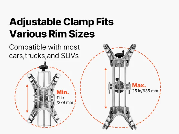 Ampia compatibilità: il morsetto regolabile per l'allineamento delle ruote si adatta a cerchi con diametro. Funziona con la maggior parte di berline, rendendolo un'aggiunta versatile al garage di qualsiasi appassionato di fai da te