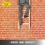 uomo che scende dalla scala di emergenza VEVOR su un muro di mattoni, capacità di carico 300 libbre.