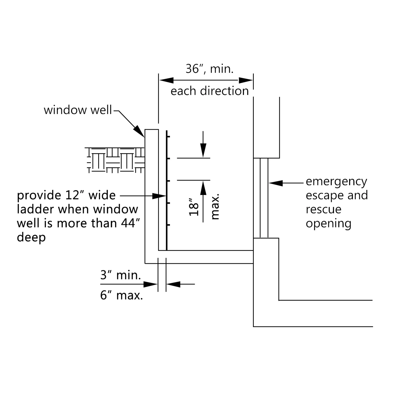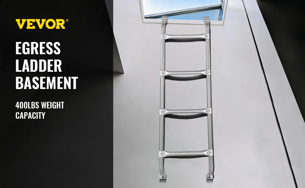 La scala per finestra di uscita è indispensabile per le uscite di emergenza dal seminterrato con materiale in acciaio di alta qualità. La scala può essere fissata saldamente utilizzando l'accessorio contenuto. È progettato per l'uso in pozzi di finestre nel seminterrato con una profondità da 54" a 66".