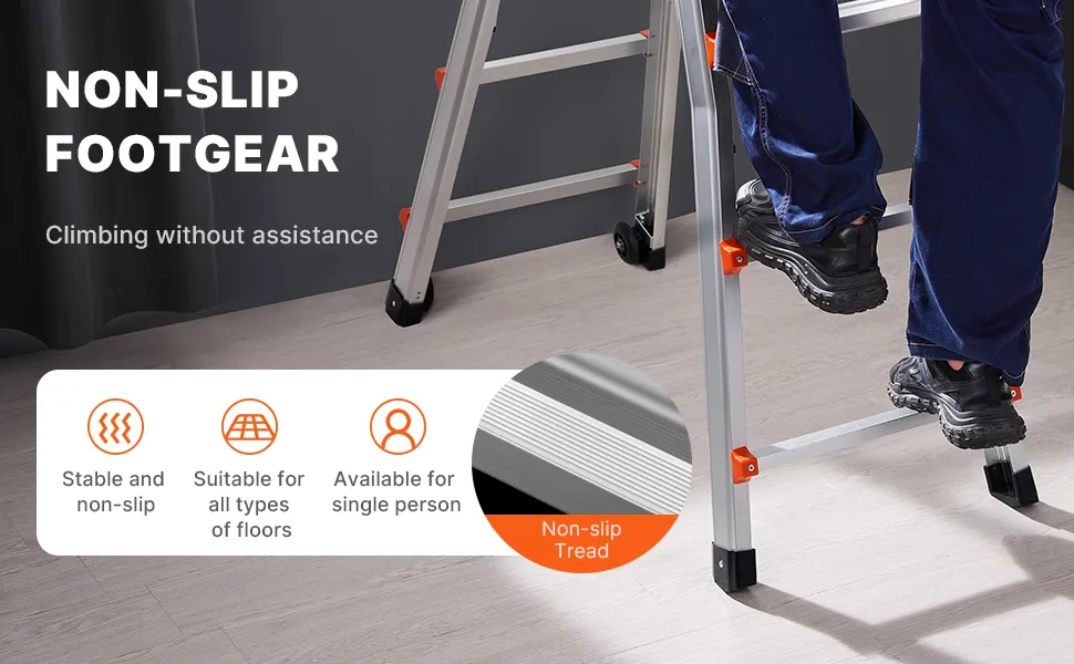 Dotata di piedini antiscivolo, questa scala rimane stabile su varie superfici, fornendo protezione al pavimento evitando scivolamenti, anche se utilizzata da sola.