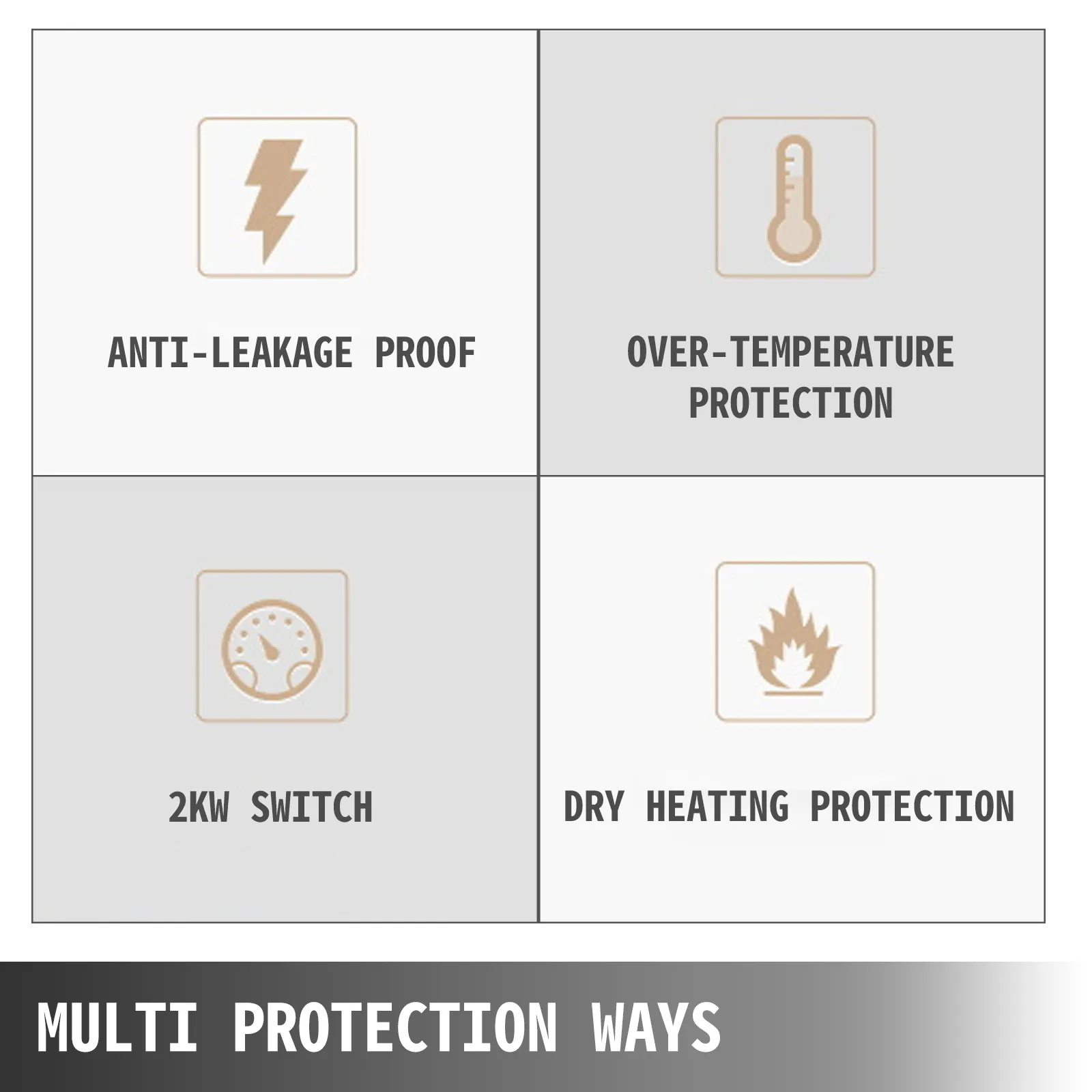 Per aumentare la sicurezza d'uso, questo prodotto è dotato di molteplici misure: protezione dalla pressione eccessiva dell'acqua, protezione contro la combustione a secco, a prova di perdita di elettricità, ecc.
