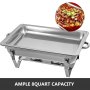 Il buffet di scaldavivande in acciaio inossidabile, con una padella d'acqua, una padella per alimenti e due supporti per carburante, può aiutare a riscaldare gli alimenti e mantenerli caldi in ogni occasione. Inoltre, questo rinforzo è più comodo da portare e da pulire. Con il suo telaio in acciaio inossidabile, garantisce sicurezza e longevità per conservare gli alimenti.