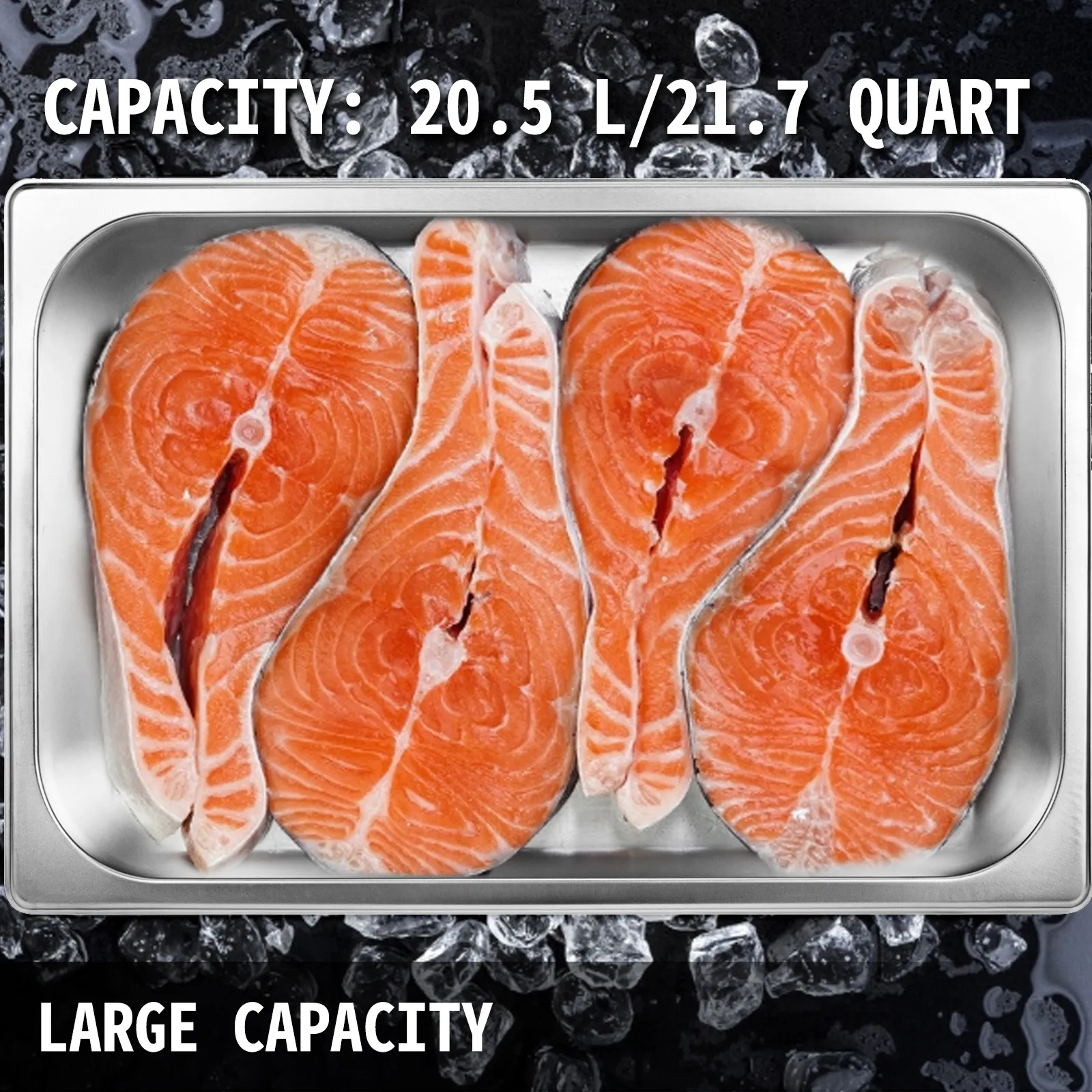 Con 6" di profondità e 20,5 L / 21,7 Quart di capacità, ideale per contenere carni, contorni, frutta e praticamente qualsiasi tipo di cibo. Gestisci facilmente l'uso quotidiano, le cucine affollate e il servizio di buffet e catering ad alto volume.