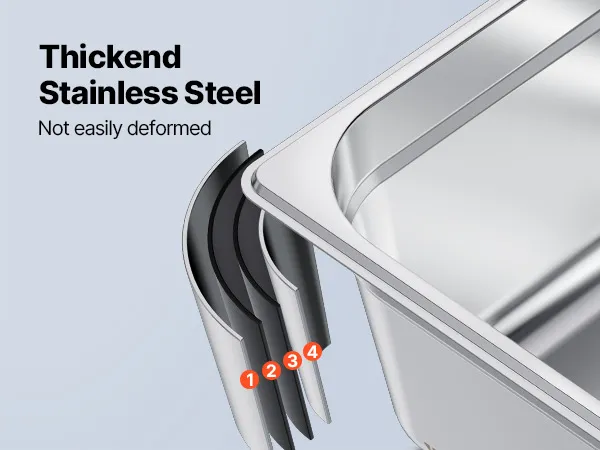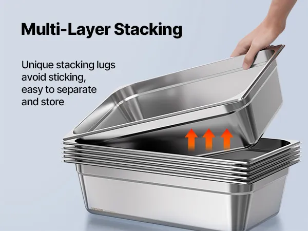 Design accurato: questa teglia per alimenti in acciaio inossidabile è dotata di esclusive alette di impilamento antiaderenti che ne migliorano la resistenza strutturale. Offre una maggiore durata e rende più comodo l'impilamento e lo stoccaggio