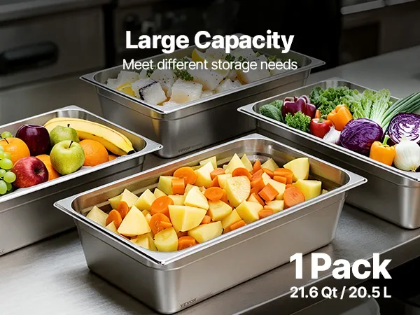 Ampia capacità: questa pentola per la cottura a vapore in acciaio inox da 1/1 (profondità 15 cm, confezione da 1) offre una generosa capacità di 20,5 l/82 qt, soddisfacendo le tue esigenze di cottura quotidiane