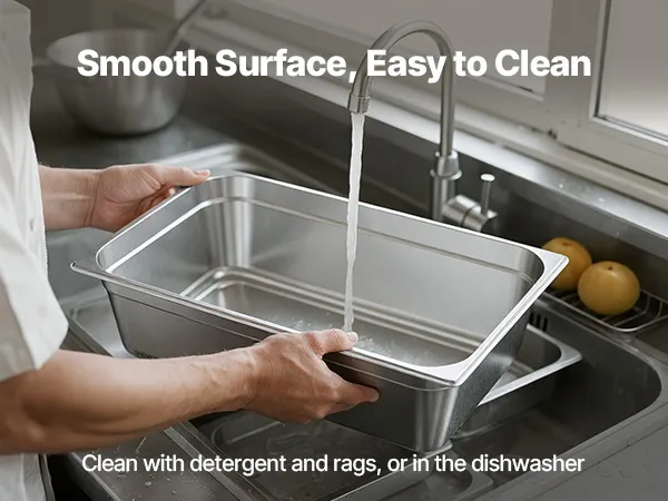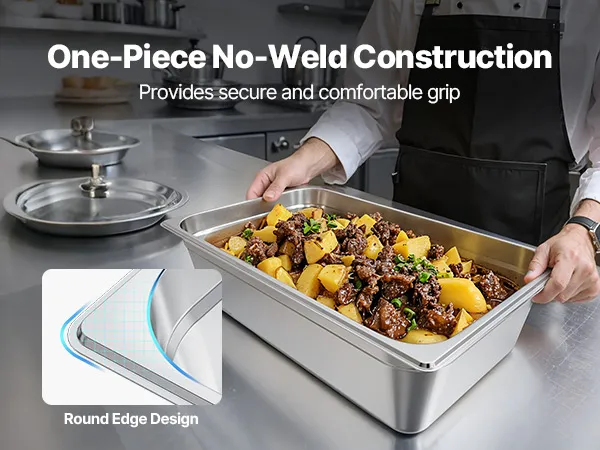 Bordi lisci: questa teglia da ristorante in acciaio inossidabile presenta una struttura monoblocco senza giunture con bordi lisci che non graffiano le mani durante l'uso o la pulizia. La finitura elettrolitica opaca aggiunge un aspetto moderno