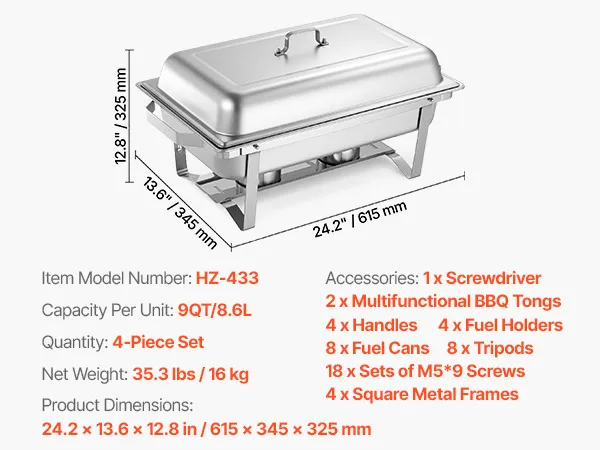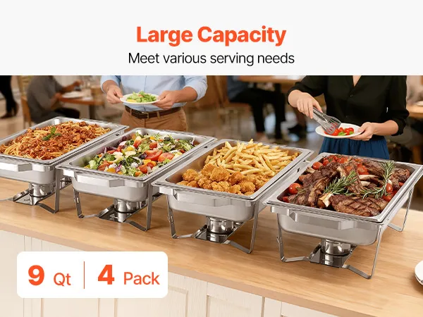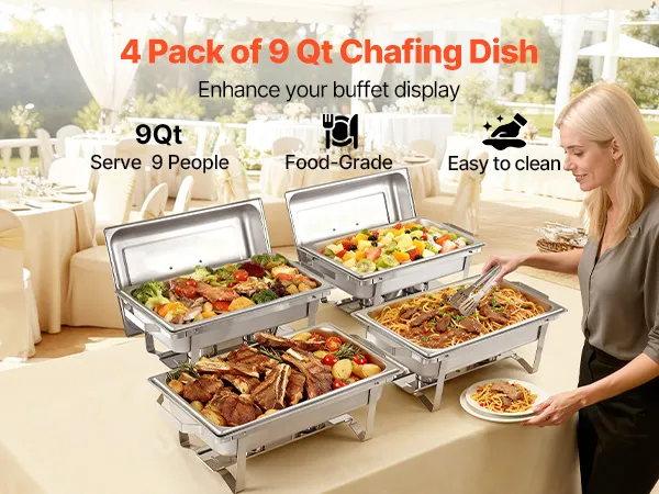 Ampio servizio: questo set di scaldavivande da quattro pezzi è progettato per garantire efficienza e può contenere vassoi di grandi dimensioni fino a 9 quarti (8,5 litri) di capacità. Può servire almeno otto persone con antipasti