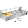 Mantieni i cibi precotti a temperature perfette per periodi prolungati con il nostro espositore a bagnomaria. Basta riempire il bagnomaria con acqua fino a circa 3-4 cm sopra il tubo di riscaldamento e posizionare le dodici padelle rimovibili in acciaio inossidabile per alimenti. Impostare la temperatura tra 30℃ e 85℃ con la manopola, per mantenere il cibo caldo senza attaccare, bruciare o seccare.