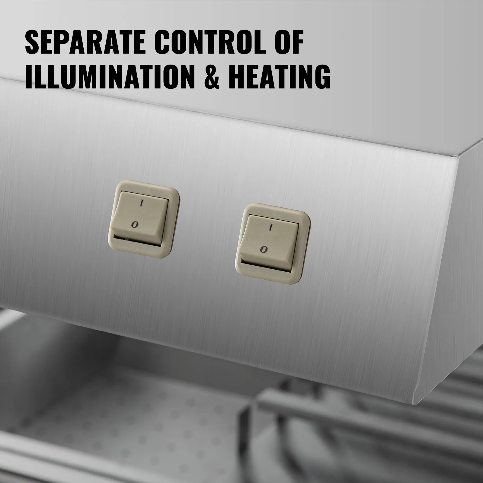 Gli elementi riscaldanti e le luci del display sono controllati da interruttori separati. Gli interruttori sono posizionati lontano dalla zona di riscaldamento, prevenendo efficacemente gli incidenti causati dalla temperatura eccessiva.