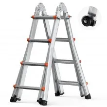 VEVOR Scala Pieghevole Multiuso, Scala Telescopica Regolabile 4 Gradini con Struttura ad A, Scala Estensibile per Impieghi Gravosi con Altezza 4,7 m Capacità 149,7 kg per Lavori Domestici all'Aperto