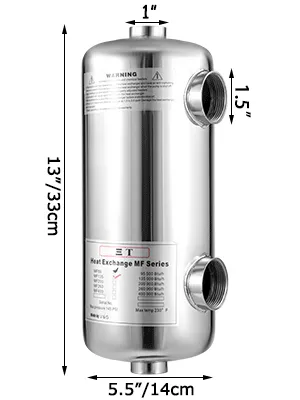 • 【SICUREZZA SUPERIORE】 - Questo scambiatore di calore è un modo molto sicuro, affidabile, efficiente ed economico per riscaldare una piscina o spa da qualsiasi sistema idronico.
