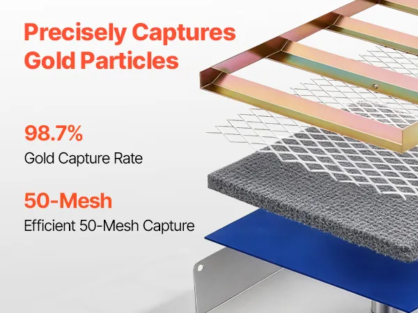 Raccolta efficiente: La maglia angolata e l'ampia fessura ottimizzano il flusso d'acqua per una rapida separazione di sabbia, ghiaia e metalli pesanti