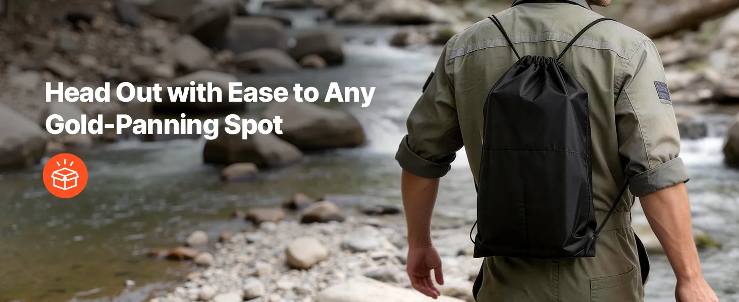 Design portatile: Gli spallacci con presa sicura e uno zaino con doppia coulisse facilitano la conservazione e il trasporto, rendendo questo kit per la ricerca dell'oro Highbanker ideale per escursioni e viaggi su strada