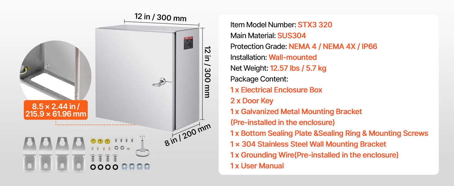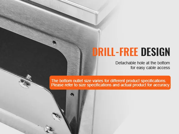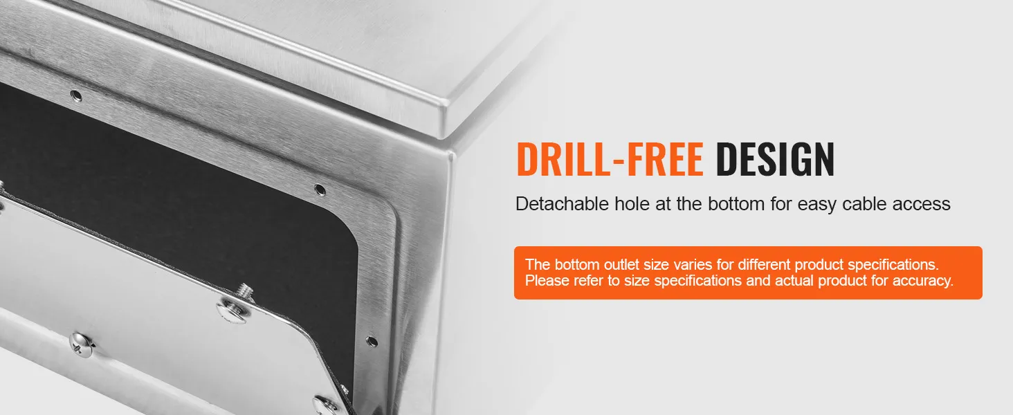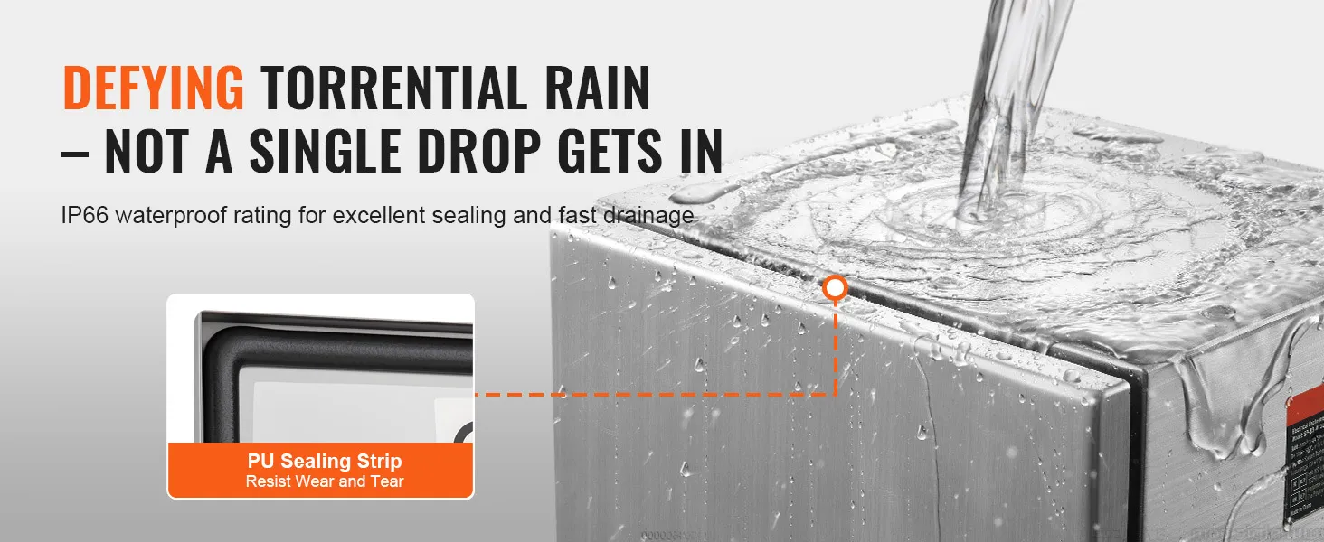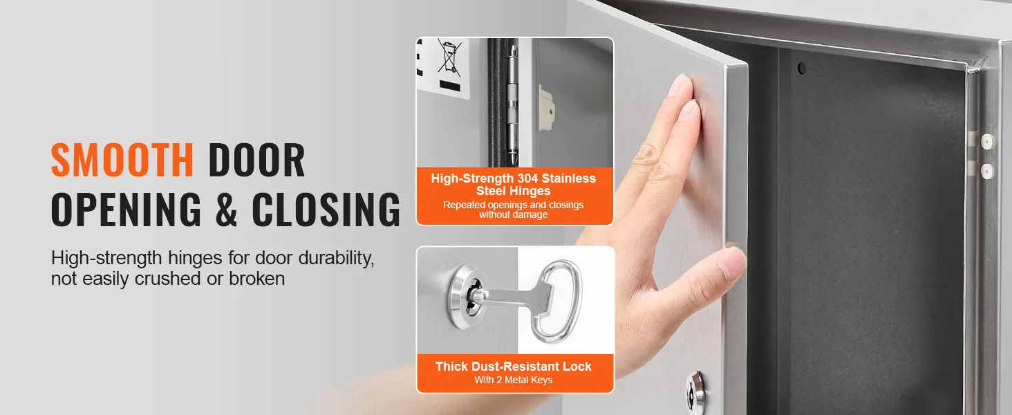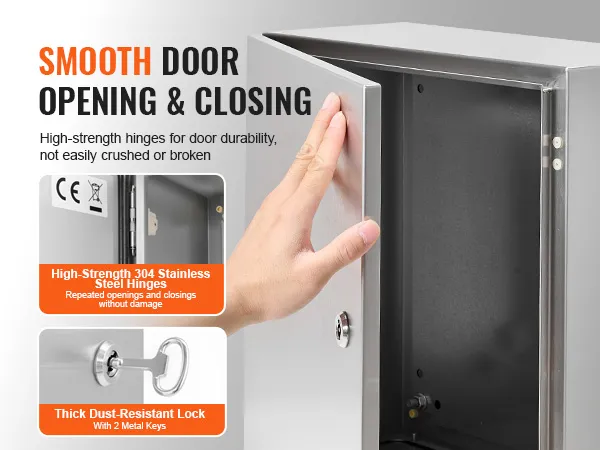 L'involucro elettrico VEVOR è realizzato in acciaio inossidabile. Questo materiale è noto per la sua resistenza alla ruggine. Garantisce che l'involucro rimanga in buone condizioni anche in ambienti umidi. L'acciaio è di calibro sufficiente da non deformarsi o deformarsi. Può sopportare modifiche senza perdere la sua forma. La costruzione di alta qualità lo rende una scelta affidabile per un uso a lungo termine. Puoi fidarti che questo involucro resisterà alla prova del tempo. Per le aree in cui ruggine e corrosione sono un problema, puoi contare su questo.