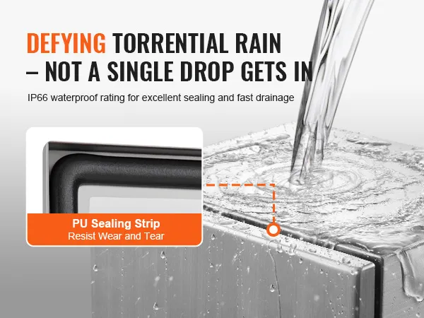 L'involucro elettrico in acciaio inossidabile VEVOR è realizzato in acciaio inossidabile 304 di alta qualità. Ha uno spessore di 1,5 mm, garantendo quindi durata e longevità. Questo involucro è progettato per resistere a condizioni difficili. Non si deformerà, non si deformerà o si deformerà anche dopo molteplici modifiche. Tuttavia, è resistente e ti servirà bene per molti anni. Qual è la parte migliore di questo involucro? Sia l'uso interno che esterno sono ideali con la sua robusta costruzione. Quindi può gestire applicazioni pesanti. È una scelta ideale per chiunque abbia bisogno di un involucro elettrico affidabile, beneficiando anche del materiale in acciaio inossidabile.