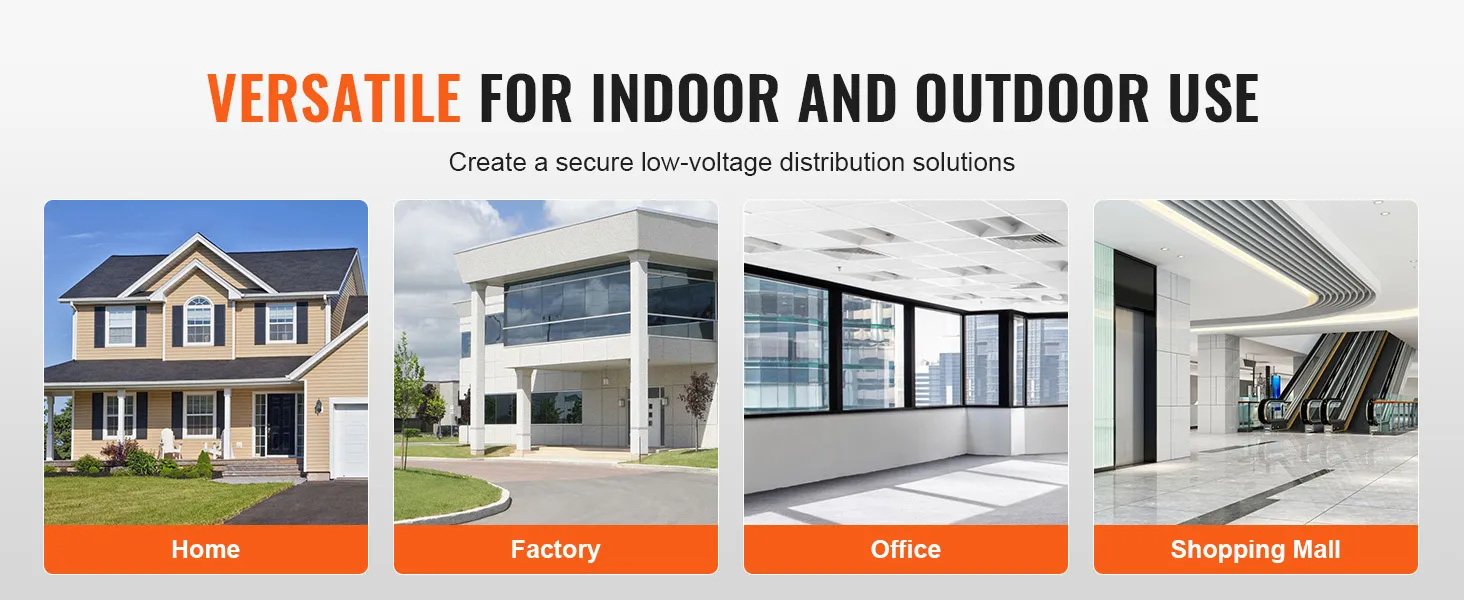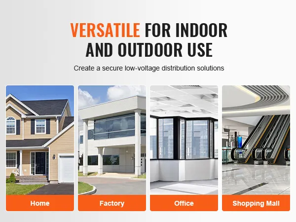 La scatola di giunzione elettrica per esterni VEVOR è versatile. Può essere utilizzata sia all'interno che all'esterno. Puoi utilizzarla sia per scopi interni che esterni. C'è anche una piastra posteriore zincata da 2 mm staccabile per installare facilmente l'involucro. Questa piastra di montaggio assicura che il telaio chiuso sia fissato saldamente. Utilizzala in varie applicazioni, come l'alloggiamento di componenti elettronici per apriporta, batterie e terminazioni di linea da 120 V. Inoltre, è adatta anche per scatole di telecomunicazione e avviatori di motori. La versatilità dell'involucro la rende una preziosa aggiunta a qualsiasi progetto. Non importa se ne hai bisogno per uso domestico o commerciale, questo involucro può gestire il lavoro.
