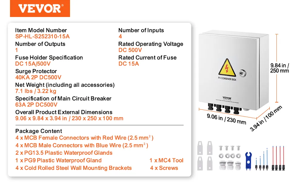 Questo è un must per qualsiasi sistema di pannelli solari. Aiuta a massimizzare la resa dei tuoi pannelli solari. Il design compatto rende l'installazione e la manutenzione un'opzione semplice. Questa scatola combinatrice di pannelli solari è perfetta per tutte le configurazioni solari che richiedono la combinazione di più stringhe di pannelli solari in un'unica uscita.