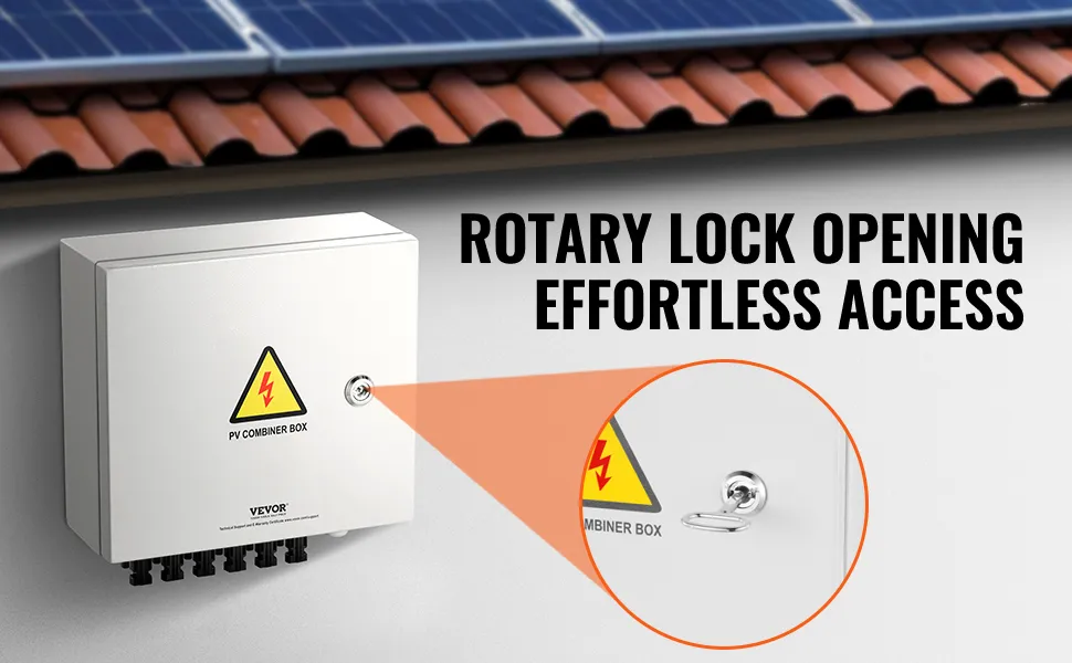 La nostra scatola combinatrice fotovoltaica è dotata di una comoda serratura a rotazione con chiave, basta usare la chiave, girarla e il gioco è fatto. Progettato sia per la sicurezza che per la semplicità.