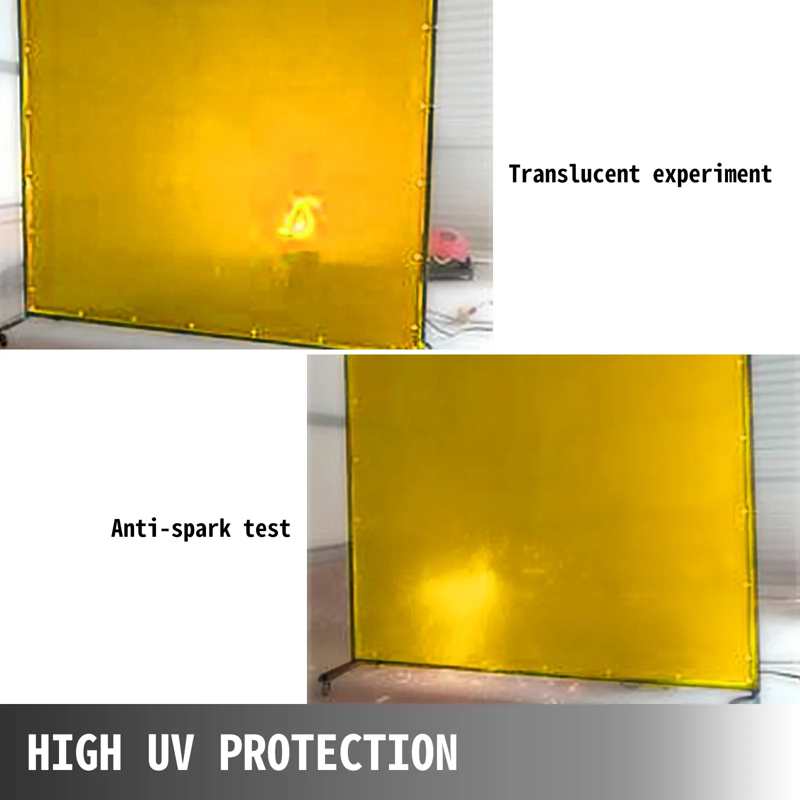 Materiale Ignifugo: La nostra tenda per saldatura comprende una composizione unica di vinile spesso 0,02"/0,43 mm. Può proteggere gli astanti da raggi nocivi, scintille e fuoco con le sue dimensioni di 6' x 8'.
