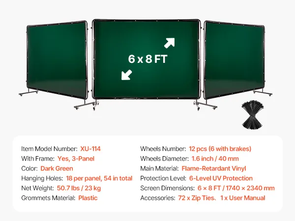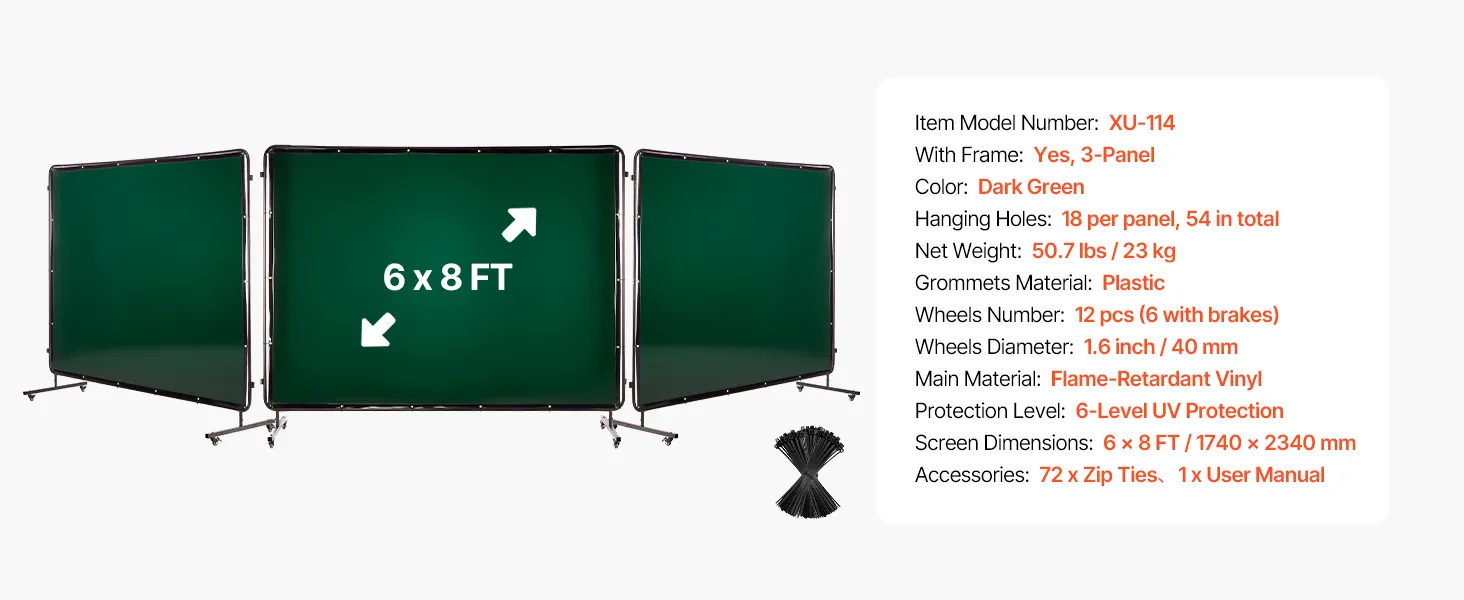 Ampia area di protezione: lo schermo di saldatura a 3 pannelli, 1,8 x 2,4 metri, con telaio, offre una protezione completa per il tuo spazio di lavoro e i tuoi progetti di saldatura