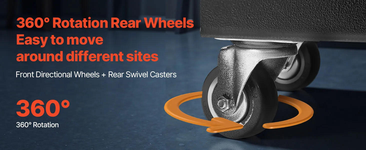 Grazie alle ruote anteriori fisse per un controllo stabile della direzione e alle ruote posteriori girevoli a 360° per una sterzata fluida, questo polverizzatore per il riciclaggio della plastica può essere spostato facilmente.
