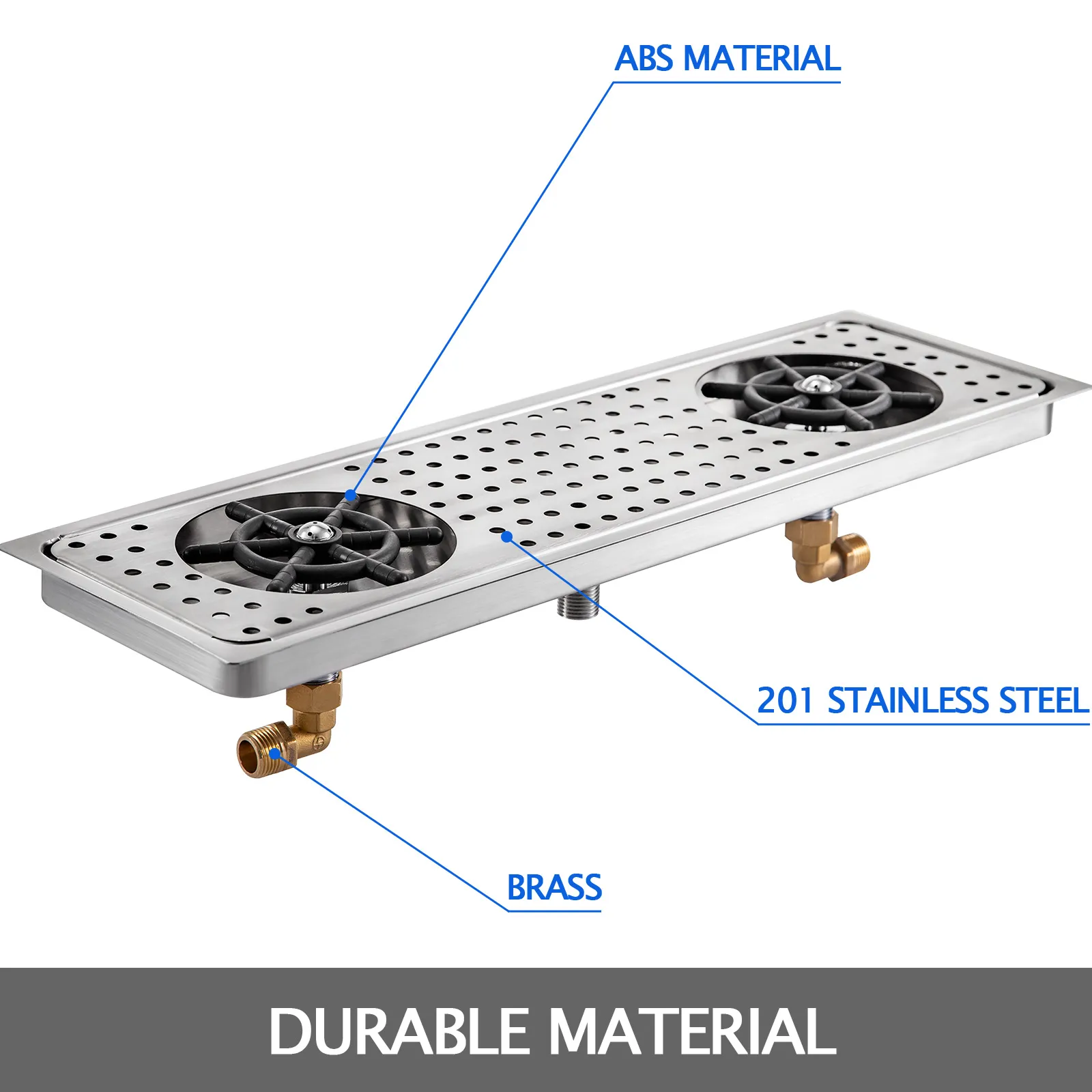 Il corpo di questa sciacquatrice in vetro da bar è realizzato in acciaio inossidabile alimentare, con sciacquatrice in ABS e ingresso e uscita acqua in ottone. Anticorrosivo e antiruggine.