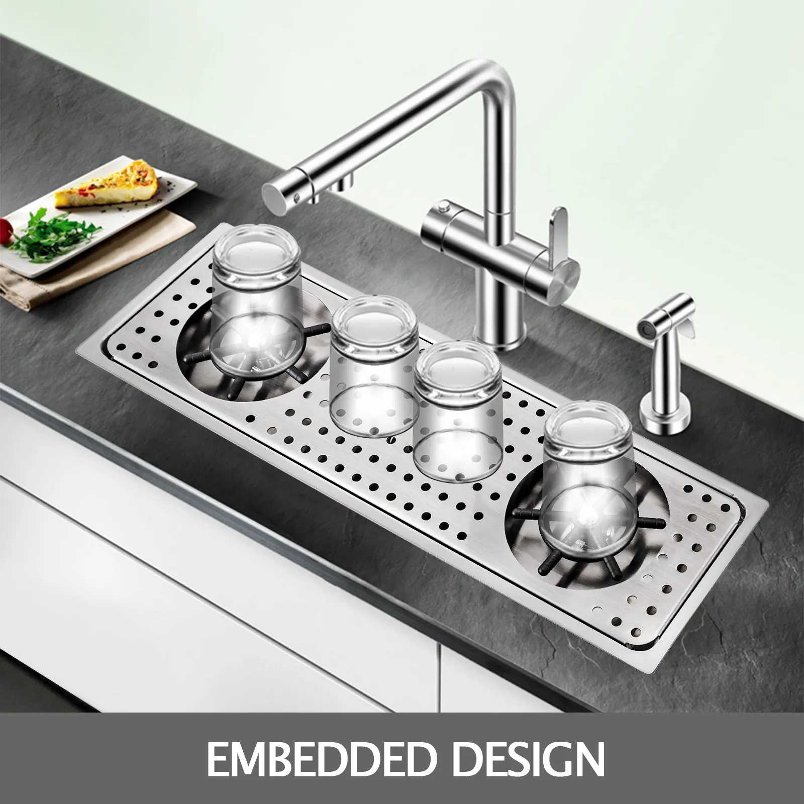 Questa sciacquatrice a tazza presenta un design incorporato, che può essere perfettamente incorporato nella barra in base a dimensioni specifiche, salvaspazio.