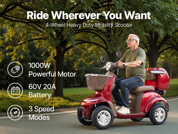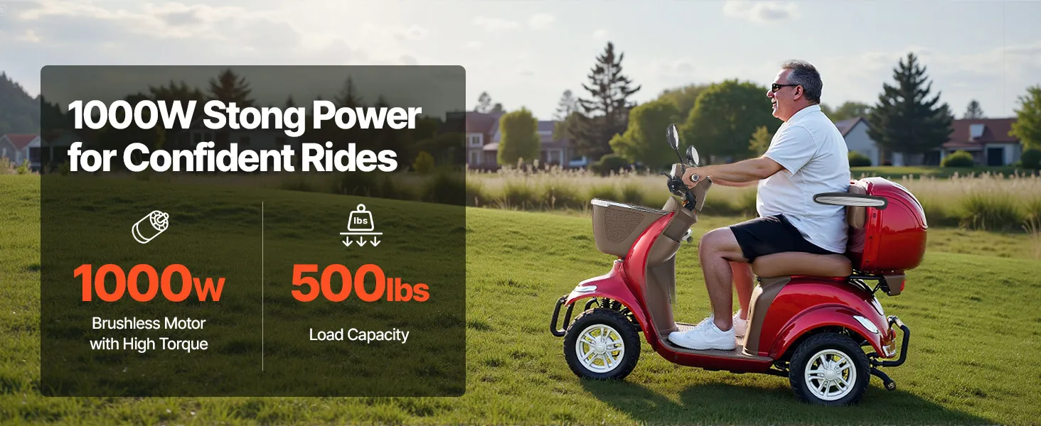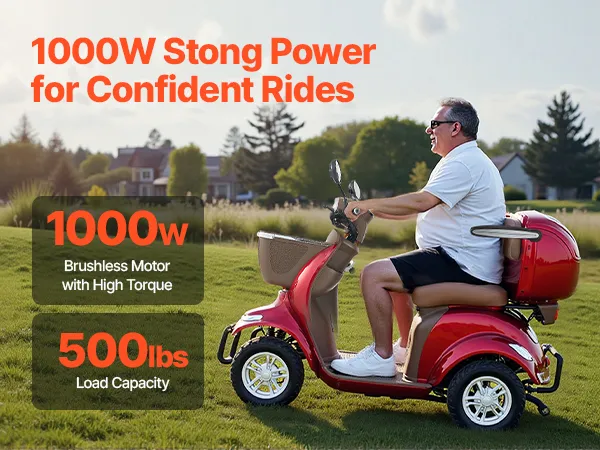 Prestazioni potenti: questo scooter elettrico per adulti e anziani è dotato di un motore brushless ad alta coppia da 1000 W, esente da manutenzione e con una lunga durata