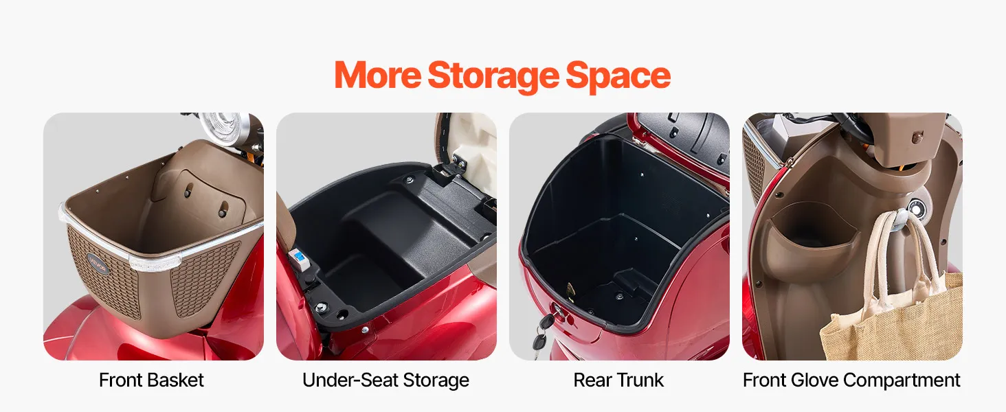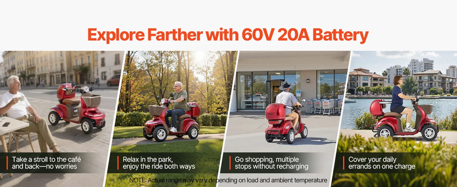 Guida stabile: il nostro scooter elettrico a 4 ruote è alimentato da una batteria al piombo ricaricabile da 60 V 20 A, che offre prestazioni di lunga durata e un'autonomia fino a 35 km per carica completa