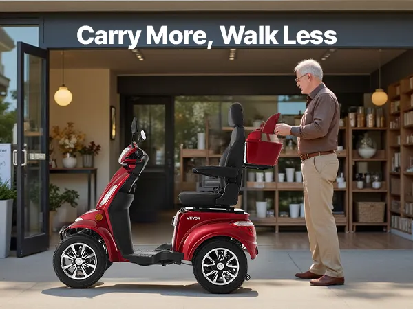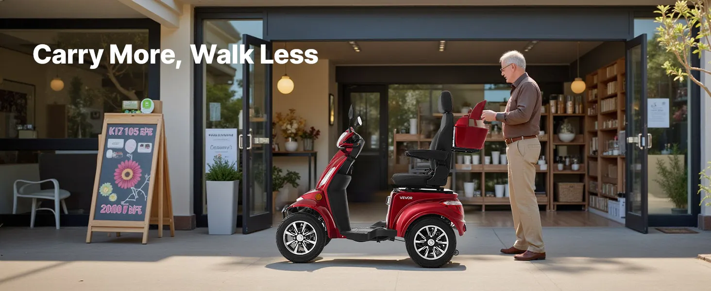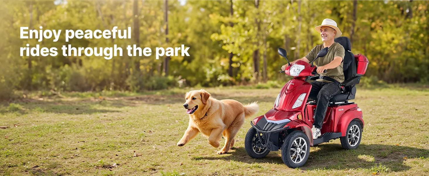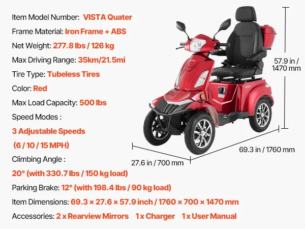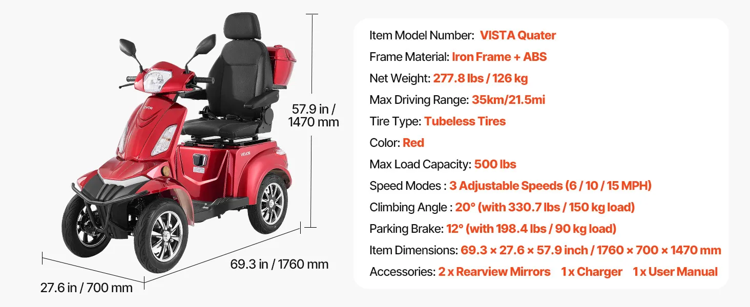 VEVOR Scooter Elettrico a 4 Ruote, Scooter Disabili 4 Ruote 1000 W, Carico max. 226,8 kg, Autonomia 35 km, 3 Modalità di Velocità Regolabili, Capacità di Salita 20°, Colore Rosso