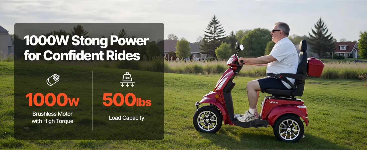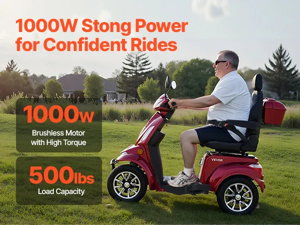 Prestazioni potenti: questo scooter elettrico per adulti e anziani è dotato di un motore brushless ad alta coppia da 1000 W, esente da manutenzione e con una lunga durata. La sua elevata potenza supportando il carico fino a 226,8 kg