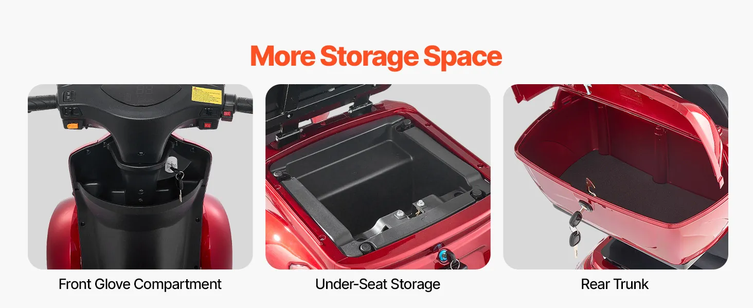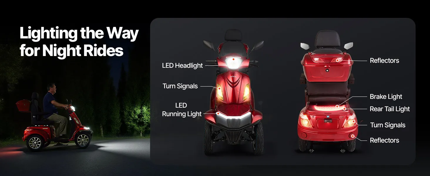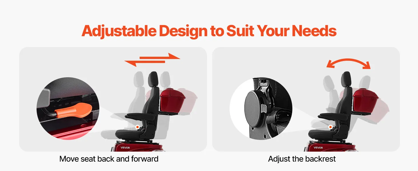 Design confortevole: questo robusto scooter elettrico per adulti è dotato di uno schienale regolabile in avanti e indietro, che offre ampio spazio per le gambe. È inoltre dotato di un poggiatesta per maggiore comfort e supporto