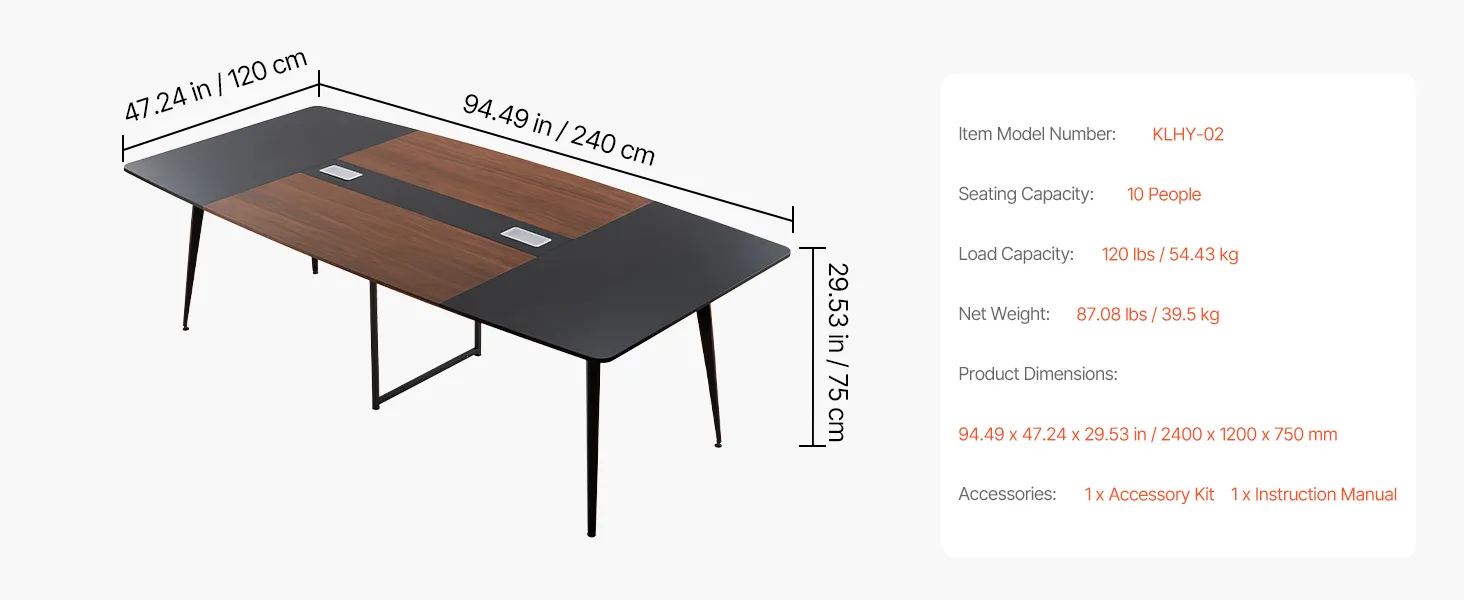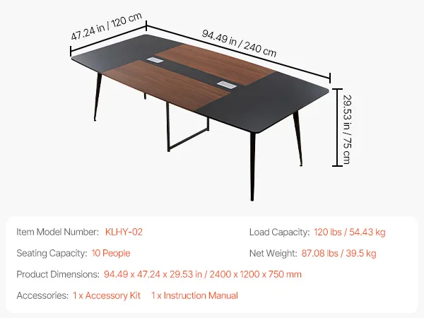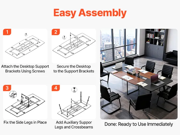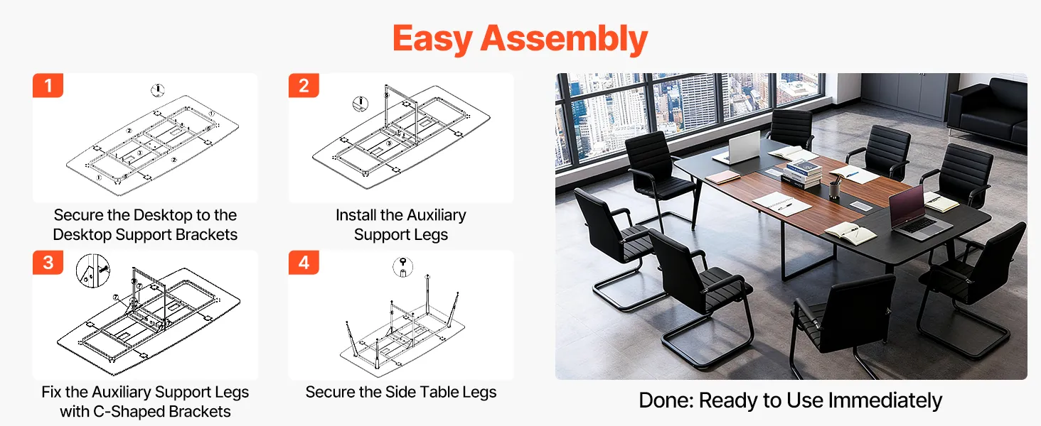 Facile da montare: il tavolo viene fornito con un set completo di viti, chiavi inglesi e cacciaviti, oltre a istruzioni. Non sono necessari attrezzi aggiuntivi; anche i principianti possono montare rapidamente un tavolo da conferenza stabile