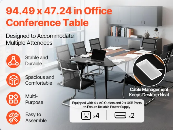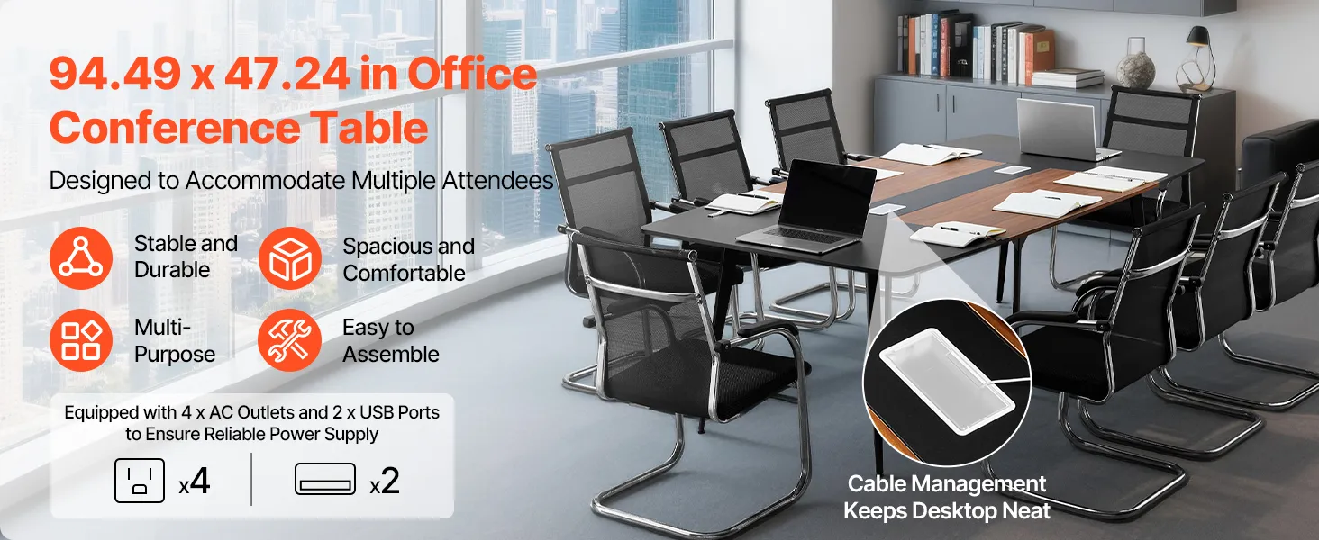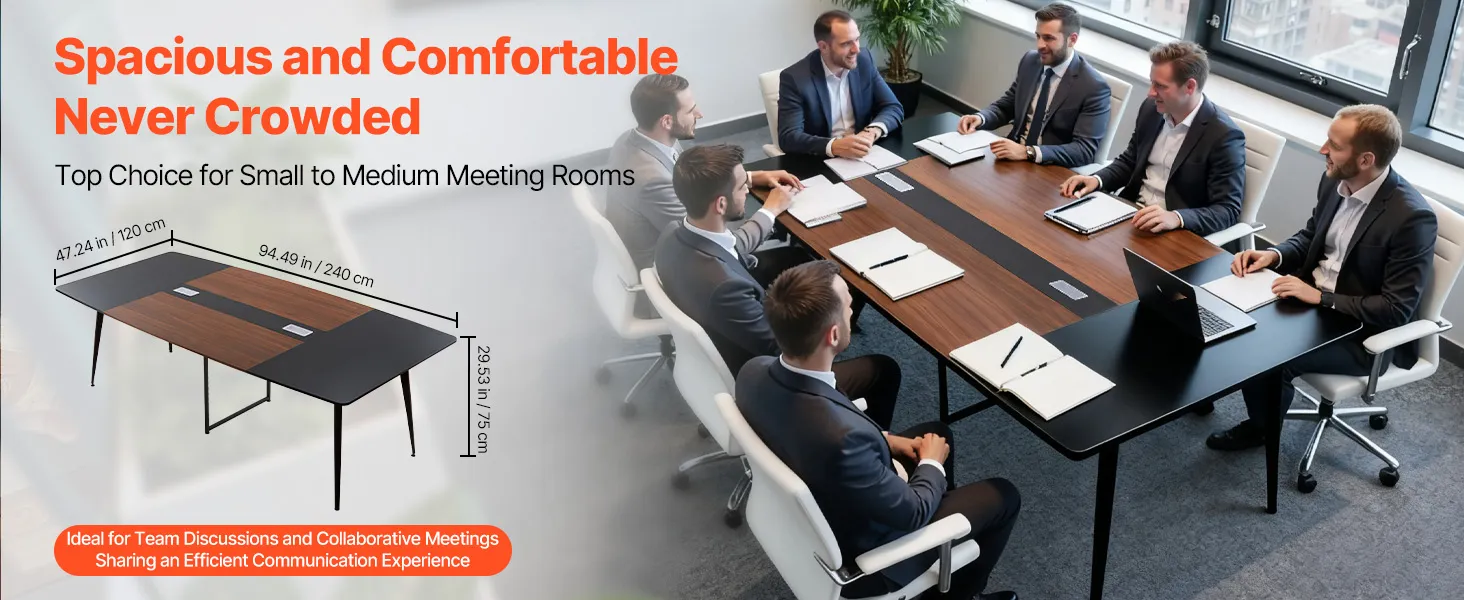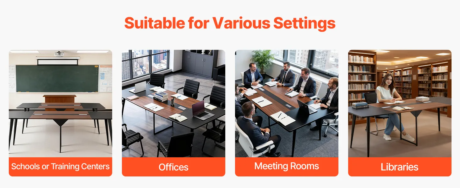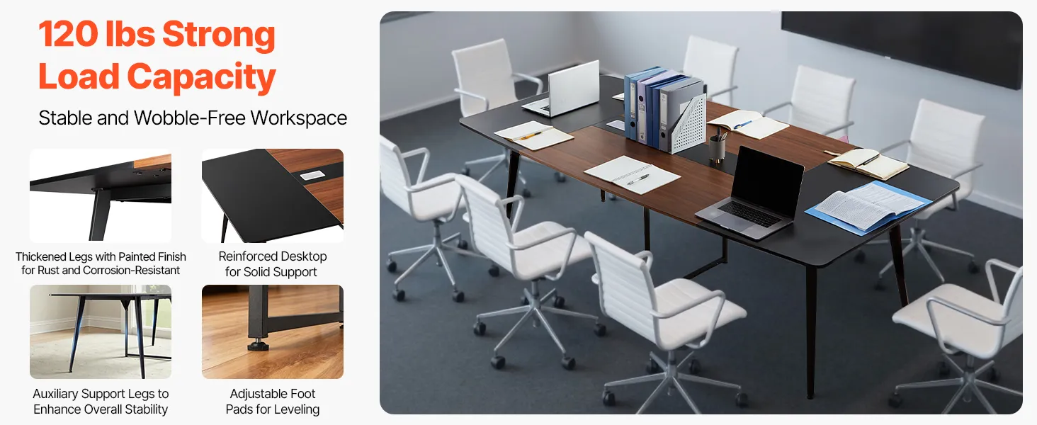 Versatile: l'elegante finitura nero-marrone si adatta agli uffici moderni. Questo tavolo da riunione è adatto per uffici, sale formazione, aree riunioni, case, tavoli da conferenza, tavoli da pranzo, scrivanie da gioco