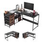 VEVOR Scrivania per Computer a Forma di L Angolare, Scrivania da Gioco ad Angolo Reversibile Lunghezza 150 cm con 4 Cassetti in Legno 2 Ripiani Portaoggetti, Tavolo per Gaming per Ufficio Casa