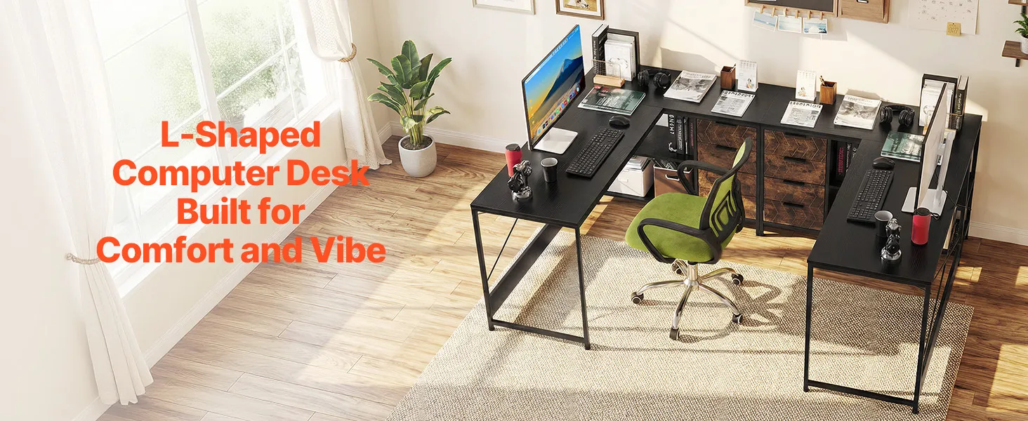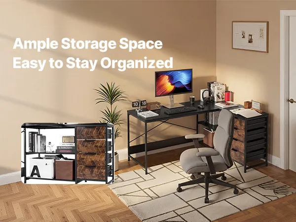 Combinando uno stile moderno con pratici spazi di archiviazione e una struttura solida, questa scrivania per PC a L arricchisce il tuo spazio di lavoro con comfort ed efficienza, grazie a quattro cassetti in legno e un ripiano inferiore a doppio strato, ideale per lavorare, studiare o giocare.