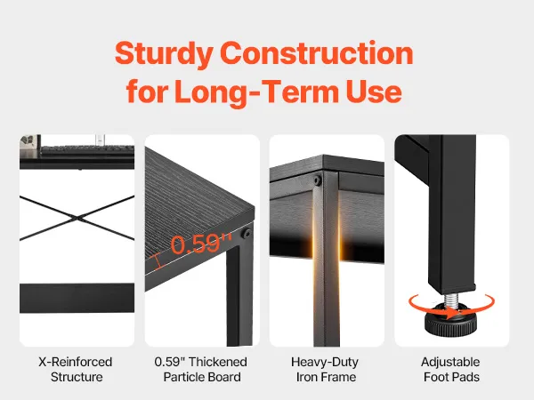 Costruzione robusta: Realizzata con materiali di prima qualità e struttura rinforzata a X, questa robusta postazione di lavoro garantisce stabilità duratura e supporto affidabile, fornendo uno spazio di lavoro solido per il tuo computer o per la configurazione dell'ufficio domestico