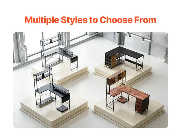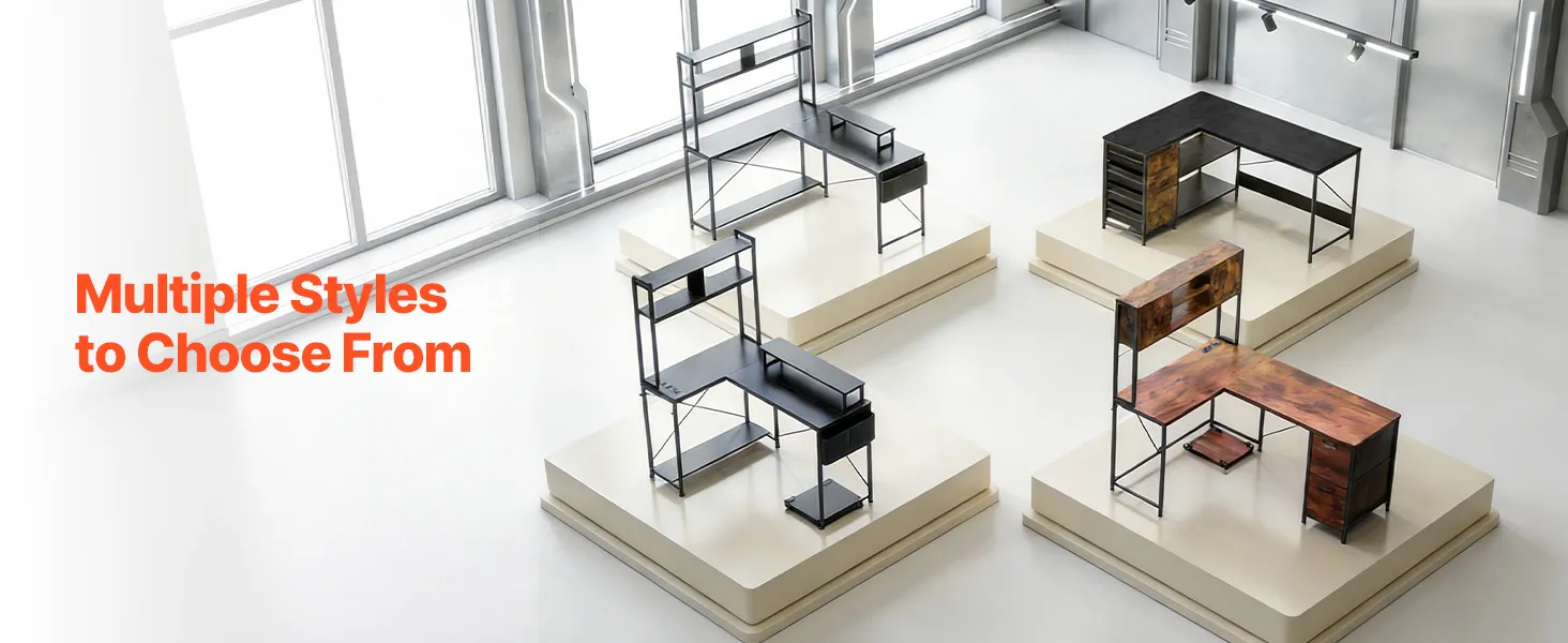 La nostra scrivania a L per l'ufficio domestico è dotata di 4 cassetti in legno scorrevoli, che garantiscono un facile accesso e uno spazio di archiviazione versatile per documenti, materiale per ufficio e oggetti personali.