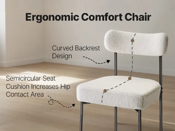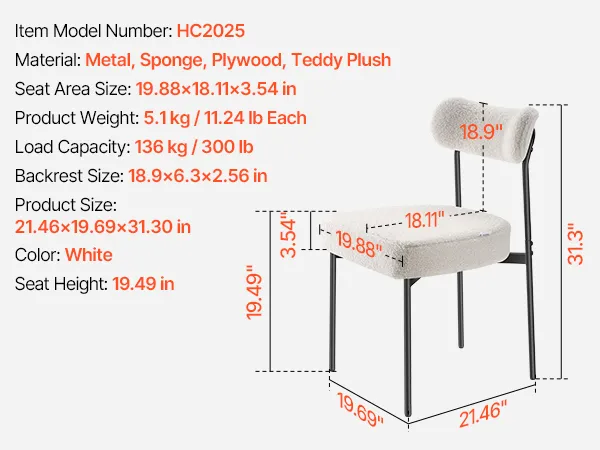 VEVOR Sedie in Stile Moderno di Metà Secolo Sherpa 545 x 500 x 795 mm Sedia Laterale Imbottita per Tavolo da Pranzo con Schienale Curvo e Gambe in Metallo Nero, 2 Pezzi, Seduta Comoda, Bianco