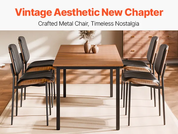Retro-Modern Elegance: Mid century kitchen side chairs feature organic wood accents. Understated sophistication through clean lines and crafted details—timeless pieces elevating living spaces with vintage charm