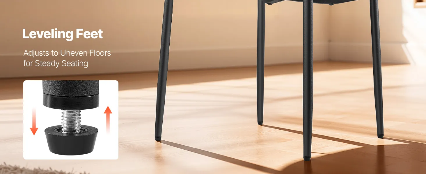 Gambe in metallo robusto: le sedie da pranzo resistenti supportano fino a 150 kg grazie alle gambe in metallo rinforzato. I perni regolabili eliminano l'oscillazione su pavimenti irregolari