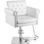 Questa sedia per parrucchiere è progettata con un aspetto e un colore classici. Tuttavia, è abbastanza moderno con perline rivestite lucide e bottoni in bronzo.