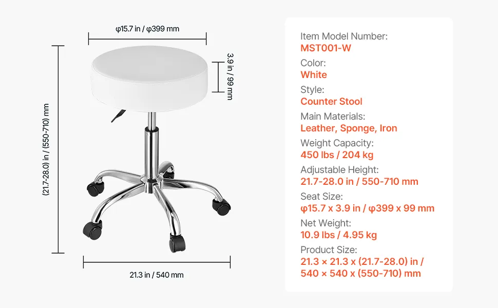 Il nostro sgabello girevole è realizzato in schiuma compressa ad alta densità. Il cuscino misura φ15,7 x 3,9 pollici e la seduta in pelle è impermeabile e traspirante, offrendo un comfort extra per lunghi periodi di seduta.