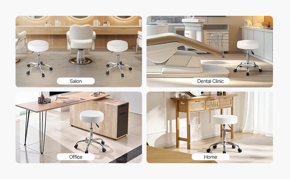 Applicazione multi-scenario: con la sua altezza regolabile, questo sgabello regolabile è ideale per i professionisti che hanno bisogno di mobilità e di una rapida adattabilità a diverse aree. Che si tratti di uno studio dentistico, di un salone, fornisce una soluzione di seduta pratica per una varietà di impostazioni