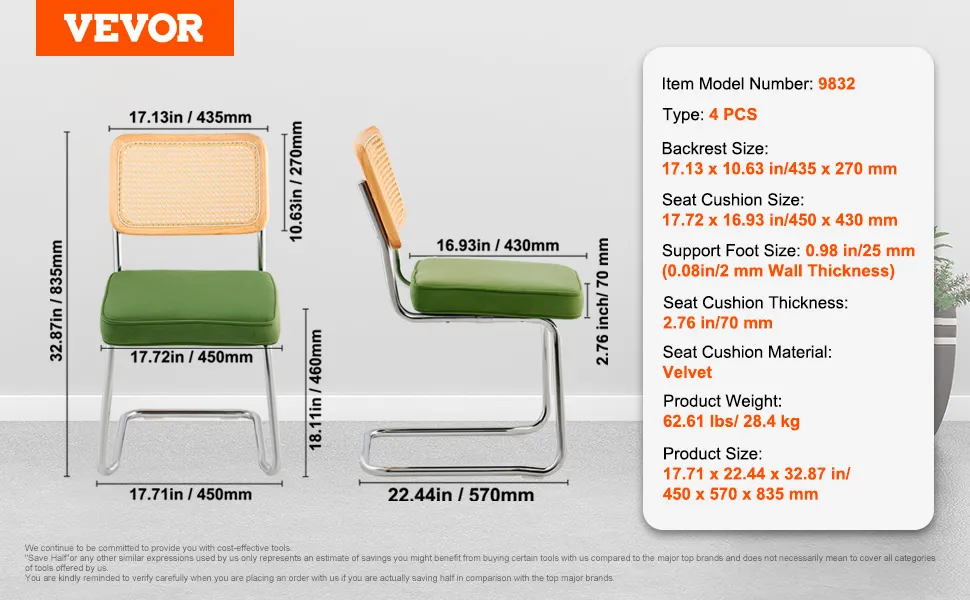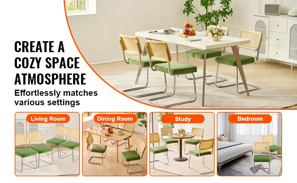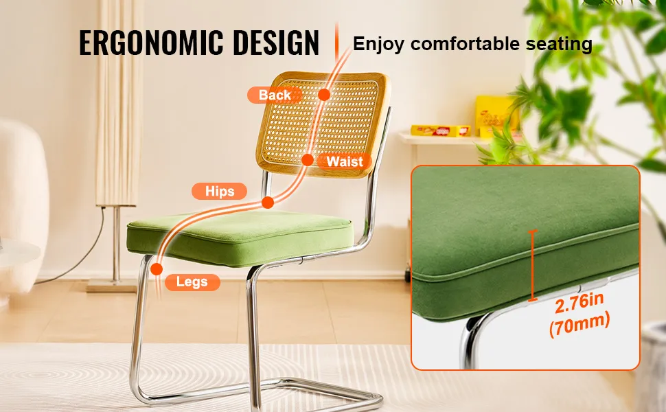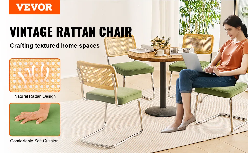 Le sedie con accenti in velluto imbottite VEVOR sono progettate per un facile montaggio. Con istruzioni chiare e tutti gli strumenti necessari inclusi, puoi montarle rapidamente. La robusta struttura in metallo a sbalzo assicura un'eccellente stabilità, offrendo un'esperienza di seduta sicura e protetta. Nonostante il loro fascino retrò, queste sedie soddisfano gli standard moderni di durata e comfort. Goditi un sottile effetto dondolo che aggiunge relax alla tua esperienza di seduta.