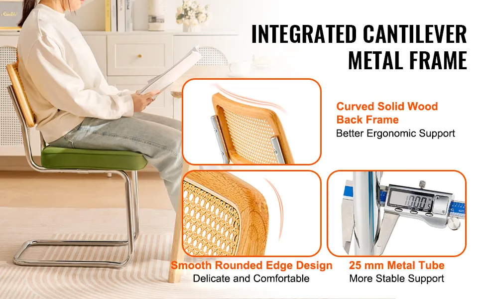 La struttura metallica a sbalzo integrata di queste sedie da pranzo assicura una lunga durata. Progettate per l'uso quotidiano, offrono eccellenti prestazioni di carico e una stabilità affidabile. Lo schienale ergonomico offre un supporto completo per la schiena, migliorando il comfort generale. Che tu stia cenando o rilassandoti, queste sedie mantengono la loro struttura robusta, rendendole un'aggiunta affidabile alla tua casa per gli anni a venire.