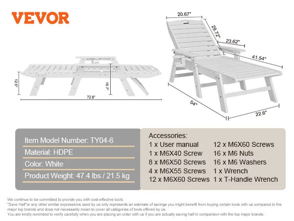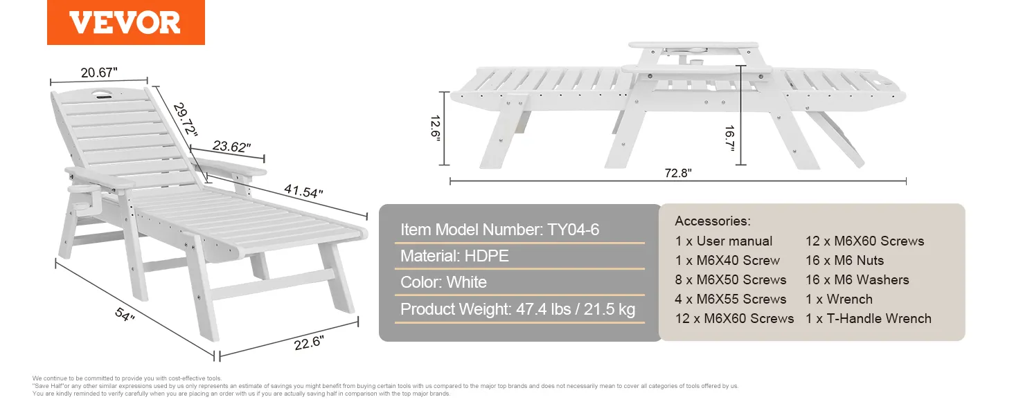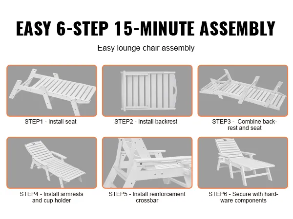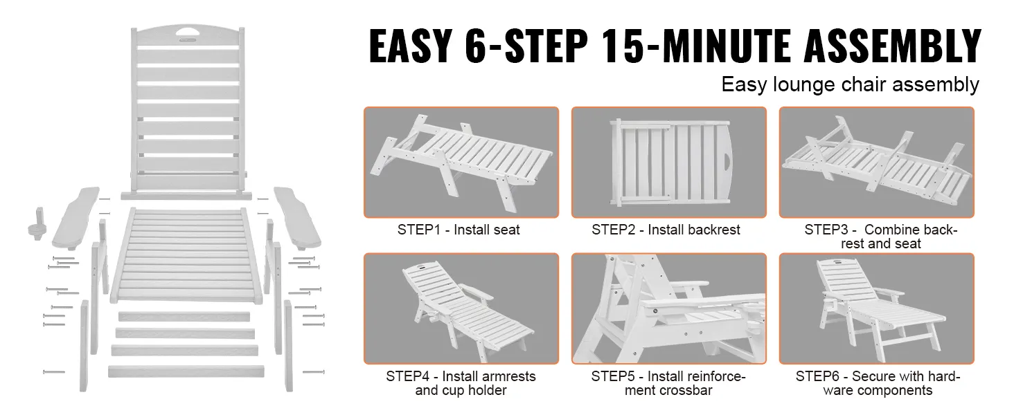 Hardware antiruggine e montaggio facile: dotata di hardware antiruggine e componenti chiave etichettati con numeri, insieme a istruzioni di installazione dettagliate, questa sedia a sdraio da piscina per esterni può essere montata in modo rapido