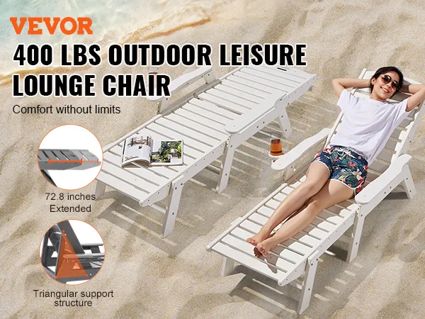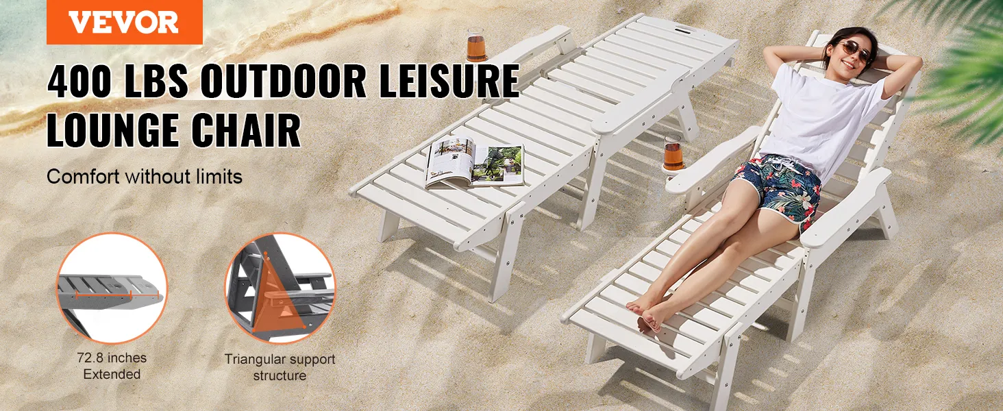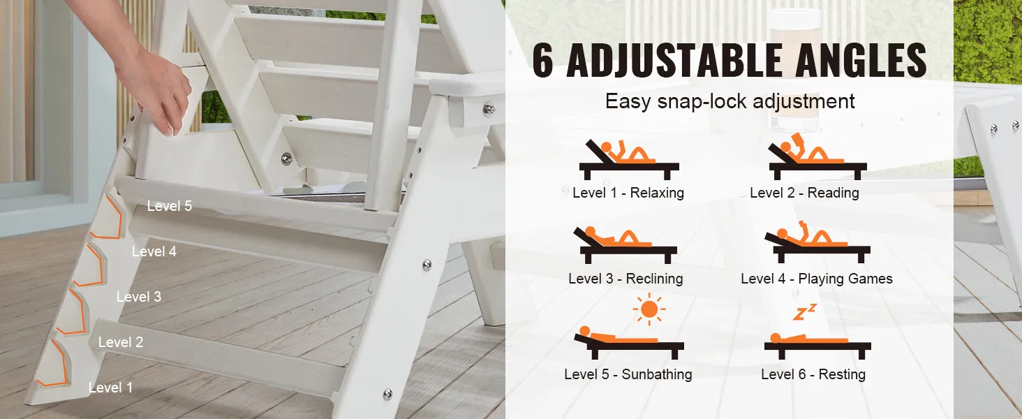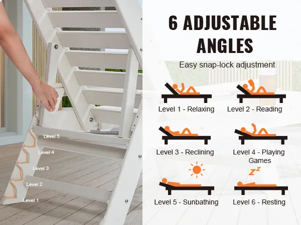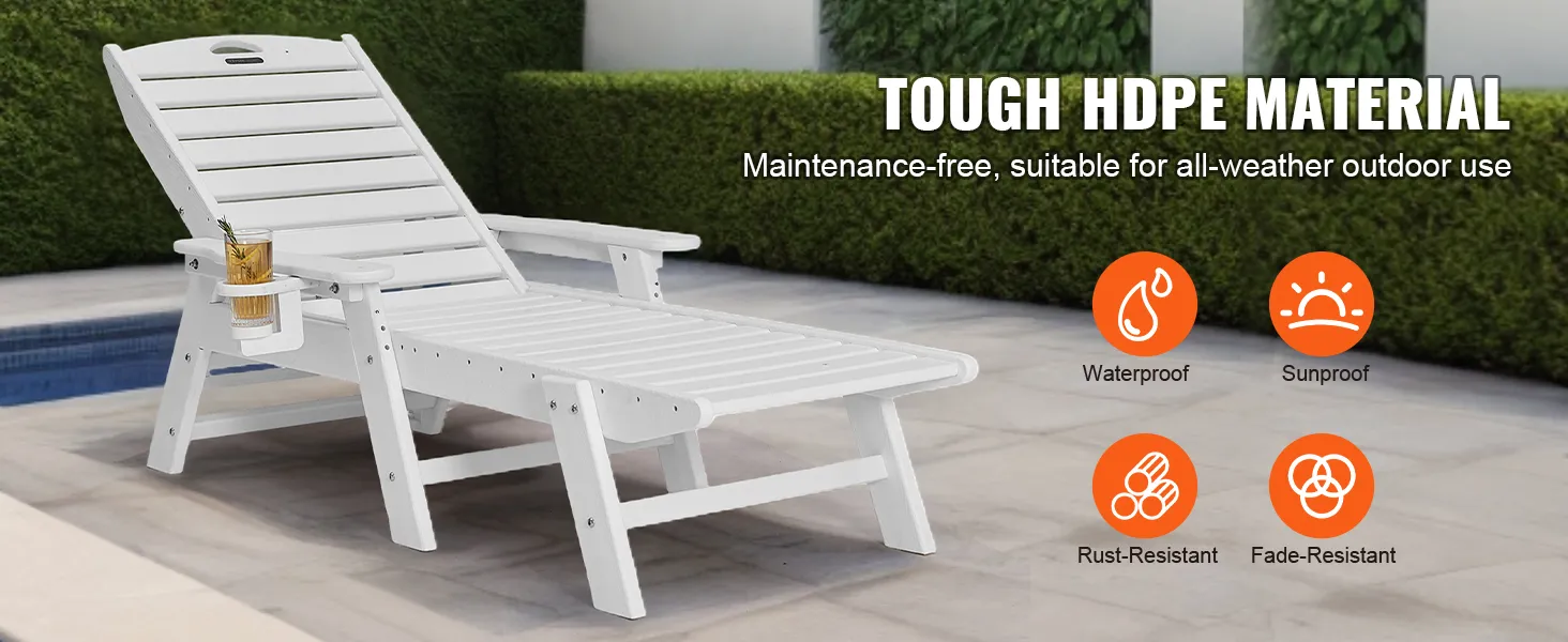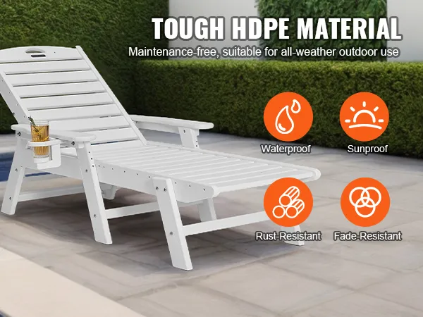 Resistente alle intemperie per uso esterno: realizzata in polietilene ad alta densità (HDPE), questa sedia a sdraio è impermeabile, resistente al sole e allo scolorimento. Resiste a forti piogge e luce solare intensa
