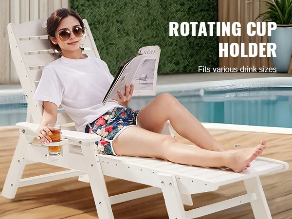 Goditi gli ampi braccioli e un ampio portabicchieri girevole, ideale per qualsiasi bevanda. Questa sedia a sdraio da piscina è progettata per il massimo comfort, trasformando il tuo giardino in una vera e propria vacanza.